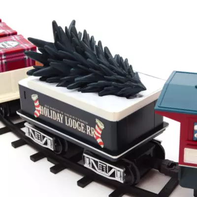 - Allgemeine Lokomotive, Weihnachtsbaum-Tender, offener Güterwagen mit Ladung, sehr detaillierter geschlossener Güterwagen mit Begleitwagen und 31 Schienenteile