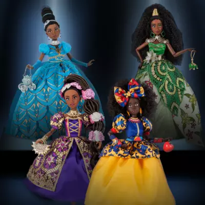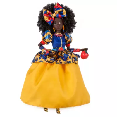 Diese wunderschöne Puppe von CreativeSoul Photography ist Schneewittchen, der ersten Walt Disney Prinzessin, nachempfunden. Hinter dem Namen CreativeSoul Photography verbirgt sich das Künstler-Ehepaar Kahran und Regis Bethencourt. Seit über 10 Jahren haben sie sich zum Ziel gesetzt, junge People of Colour zu feiern. Sie verwirklichen ihre Vision, indem sie mit afrozentrischen Designelementen die Schönheit und Kraft der Vielfalt zeigen. Diese einzigartige Puppenkollektion interpretiert auf neue Weise, wie eine klassische Disney Prinzessin aussehen könnte. Alle der liebevoll gestalteten Puppen strahlen Selbstbewusstsein aus. Sie haben natürlich wirkende Haare und bezaubern mit wunderschönen afrikanischen Stoffen und Schmuckstücken. Das Deluxe-Kostüm dieser Puppe ist farblich dem typischen blau-gelben Outfit von Schneewittchen nachempfunden. Es besticht durch Puffärmel und ein Lagenkleid mit Strassverzierungen und geformten Accessoires.
