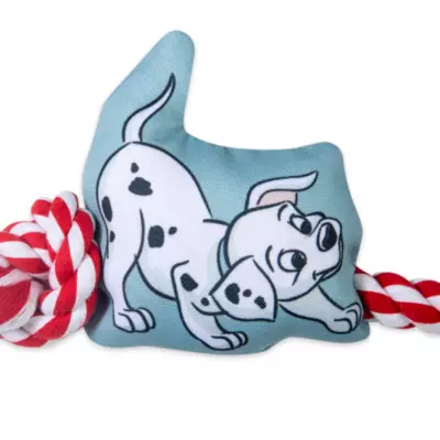 Dieses Spielzeug ist ein besonders süßer Zeitvertreib für deinen Welpen. Es hat ein auffälliges Tau, an dem zwei Dalmatiner befestigt sind.