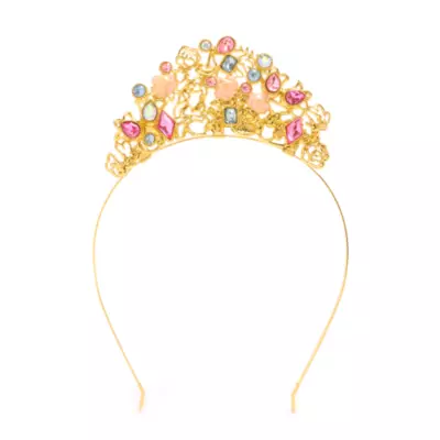 Mit diesem Aurora Diadem werden Träume wahr! Das verschnörkelte goldene Design mit subtilen Charakterdetails ist mit glitzerndem Kunststoff-Strass besetzt.