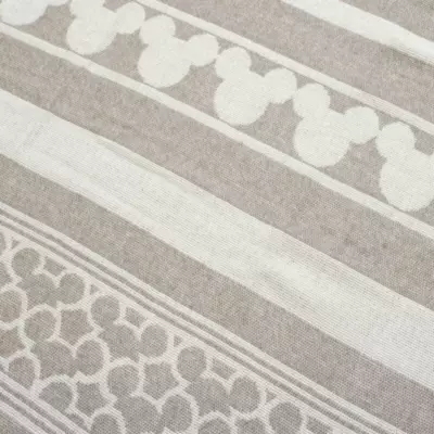 Kuschel dich warm und gemütlich in diese Micky Maus Tagesdecke ein! Das Schwarz-Weiß-Design zeigt einen dezenten Druck des Micky Symbols, der dein Zuhause verschönern wird.