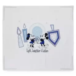 - Motiv von Micky und Minnie, die ein Geschenk austauschen, Dreidel und Kerze