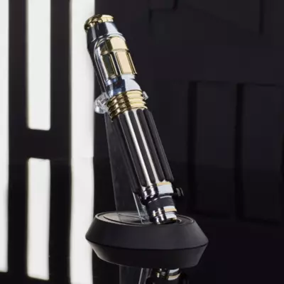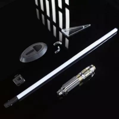 Dieses Laserschwert wurde speziell für Mace Windu angefertigt. Die elegante Waffe aus zivilisierteren Tagen weist einen detaillierten Griff auf, der die enthaltene Klinge in Lila erstrahlen lässt und dieses Modell zu einem unschlagbaren Sammlerstück macht. Das Set wird mit einem Ständer und einem Gürtelclip für das Laserschwert geliefert.