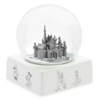 Die platinfarbene Oberfläche verleiht diesem Dornröschen Miniaturschloss, das beim Schütteln der Glaskugel von Schneeflocken umwirbelt wird, einen zauberhaften Glanz. Ein hinreißendes Andenken, wenn du im Jahr 2023 den Happiest Place on Earth besuchst, um das 100. Jubiläum von Disney zu feiern!