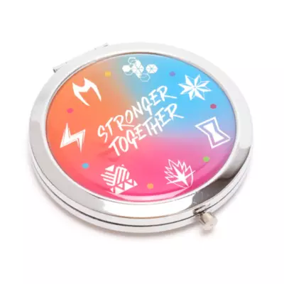 - Schriftzug Stronger together auf Spiegel und Tasche