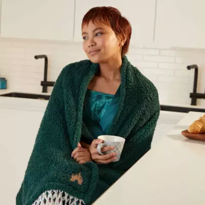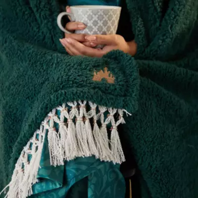 Mach es dir gemütlich unter dieser kuscheligen Tagesdecke aus Fleece! Das hübsche Design besticht durch Fransenränder und goldfarbene Stickerei.